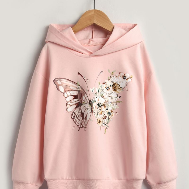 Tyttöjen Rento Perhosprintti Vaaleanpunainen Pitkähihainen Pyöreäpäällinen Hupparivaatteet