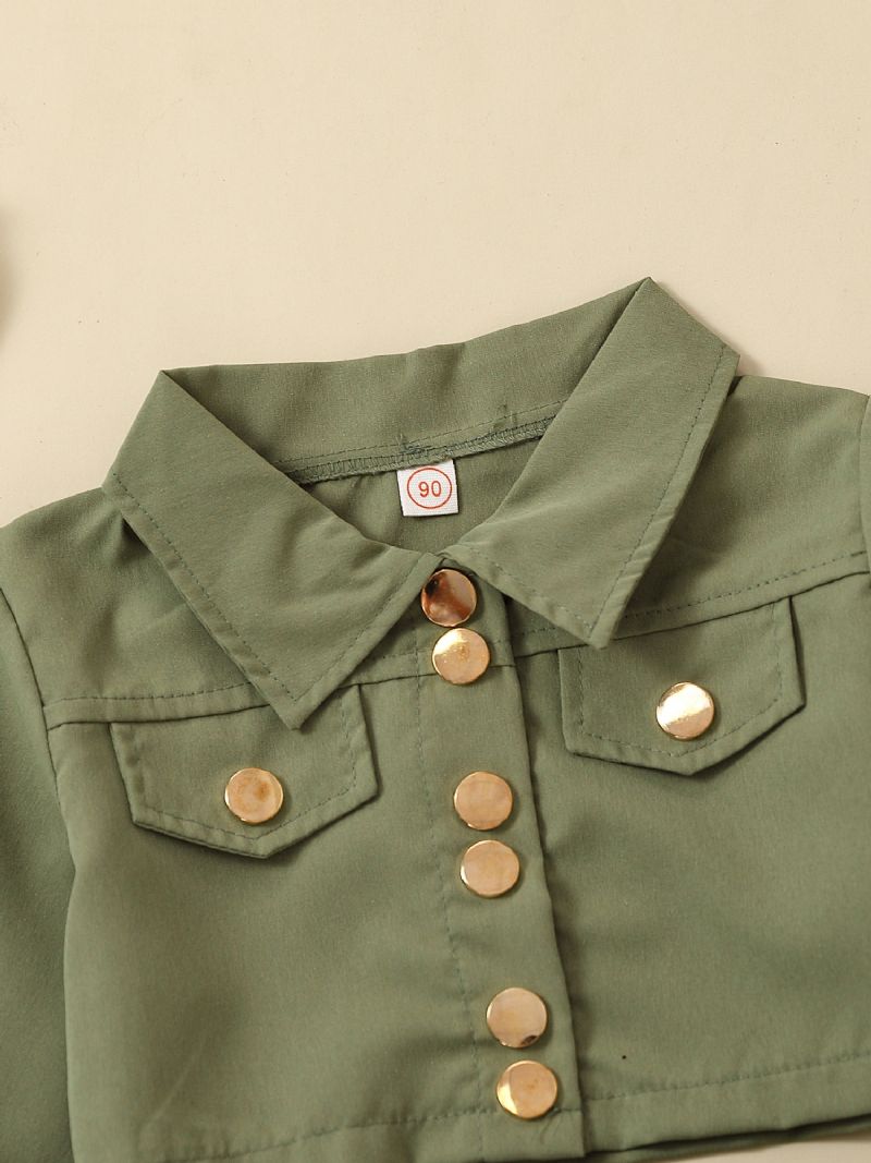 Tyttöjen Solid Lapel Pitkähihaiset Paidat Top & Vyöhamesarja Lasten Vaatteet
