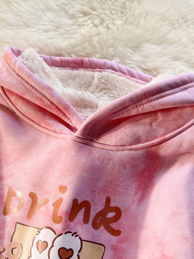 Tyttöjen Solmio Värillinen Huppari Sarjakuva Kaniprintti Pitkähihainen Pehmo Paksutettu Lämmin Pusero Talvi Lasten Vaatteet