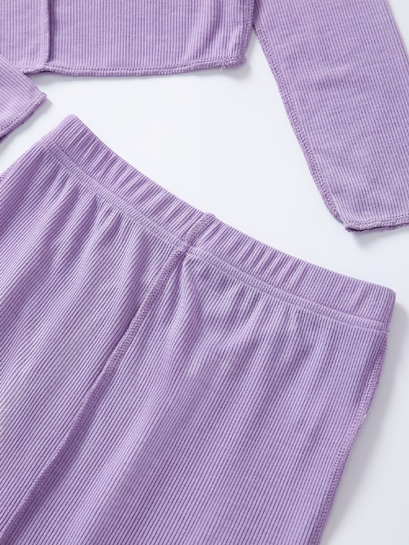 Tyttöjen Violetti Neulottu Pitkähihainen Toppi Ja Yhteensopiva Hame