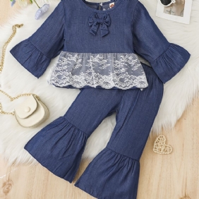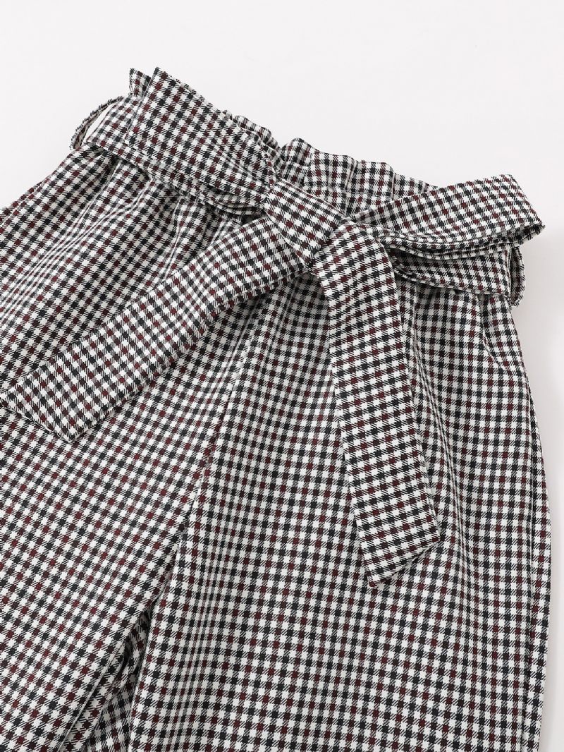 Tyttöjen Yksiväriset Pitkähihaiset Röyhelötoppi Ja Ruudullinen Housusetti Lasten Vaatteet