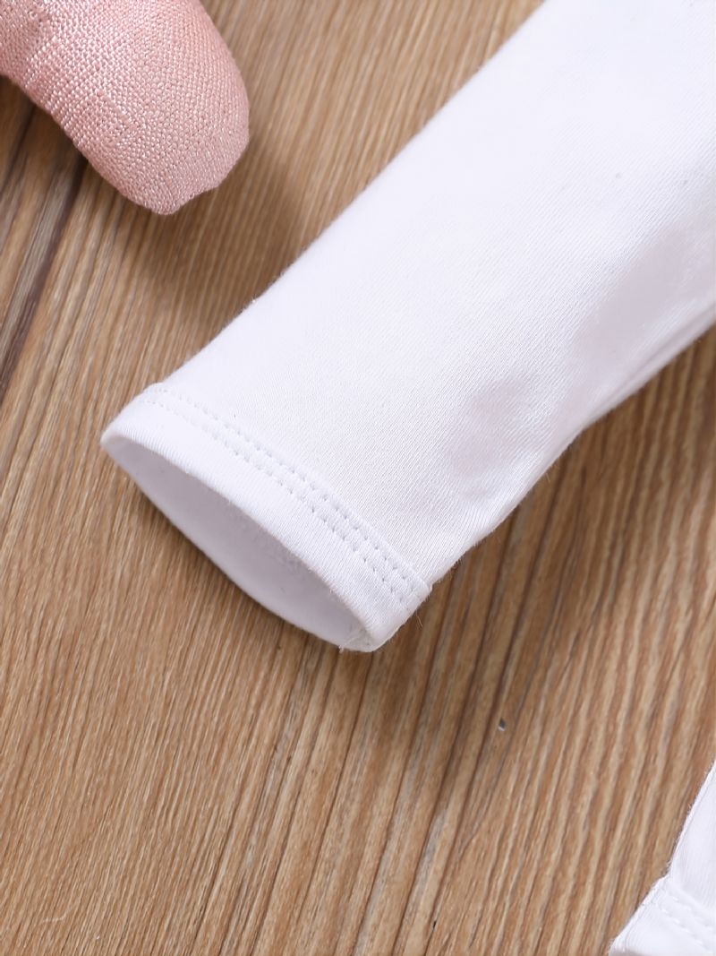 Tyttövauva Sarjakuva Unicorn Solid Pyöreäkaula-pitkähihainen Bodysuit Vapaa-ajan Housut & Hattu & Päänauhasetti