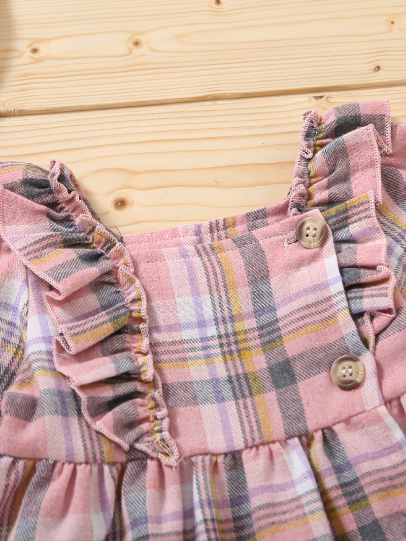 Tyttövauva Suloinen Rento Ruudullinen Pitkähihainen Mekko Keväällä Syksyllä