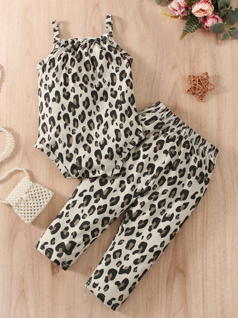 Tyttövauvan Henkselit Kolmiohousut Leopardikuvioiset Housut