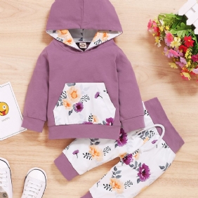 Tyttövauvan Kolmiosainen Setti Puhtaasta Puuvillasta Tehtyä Pitsinauhaa Avorintaa Pitsillä Tikkautuva Toppi Ja Kukkahousut (mukaan Lukien Päähuivi)