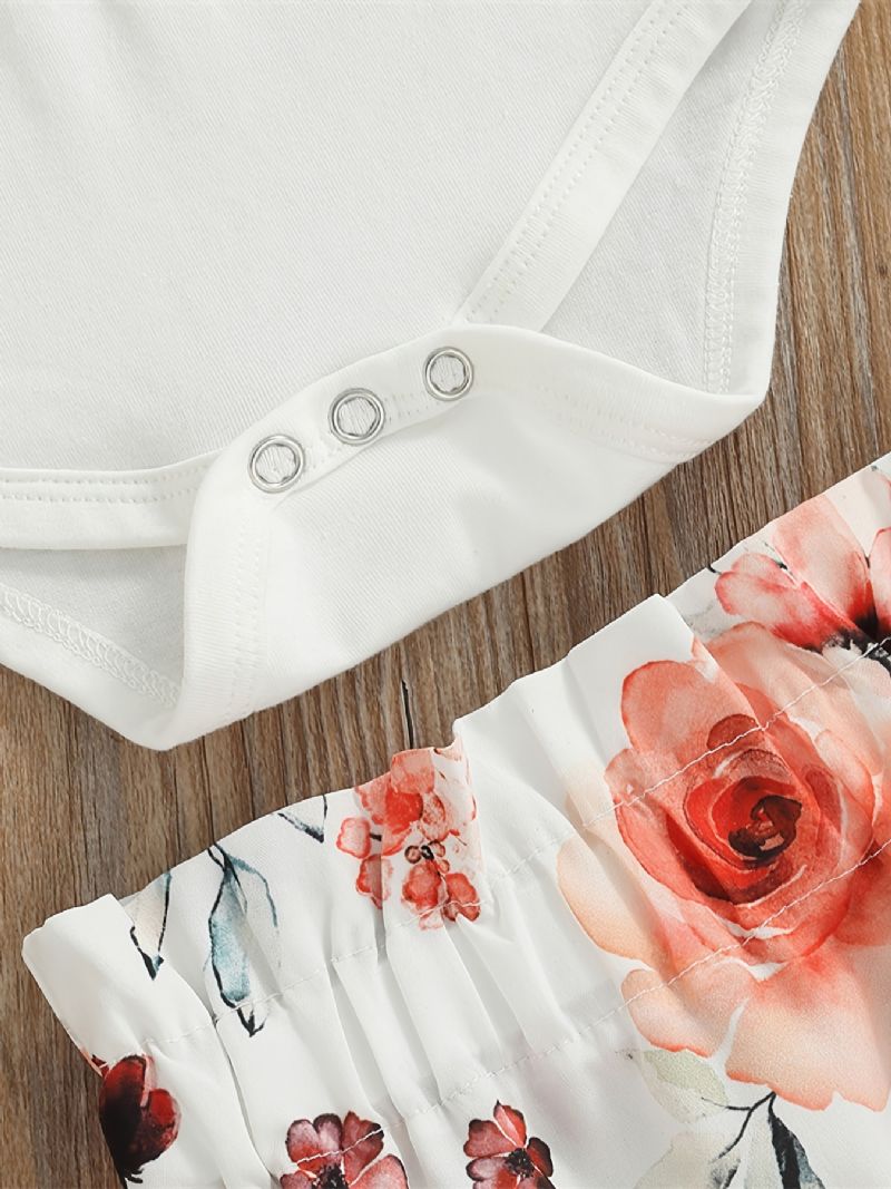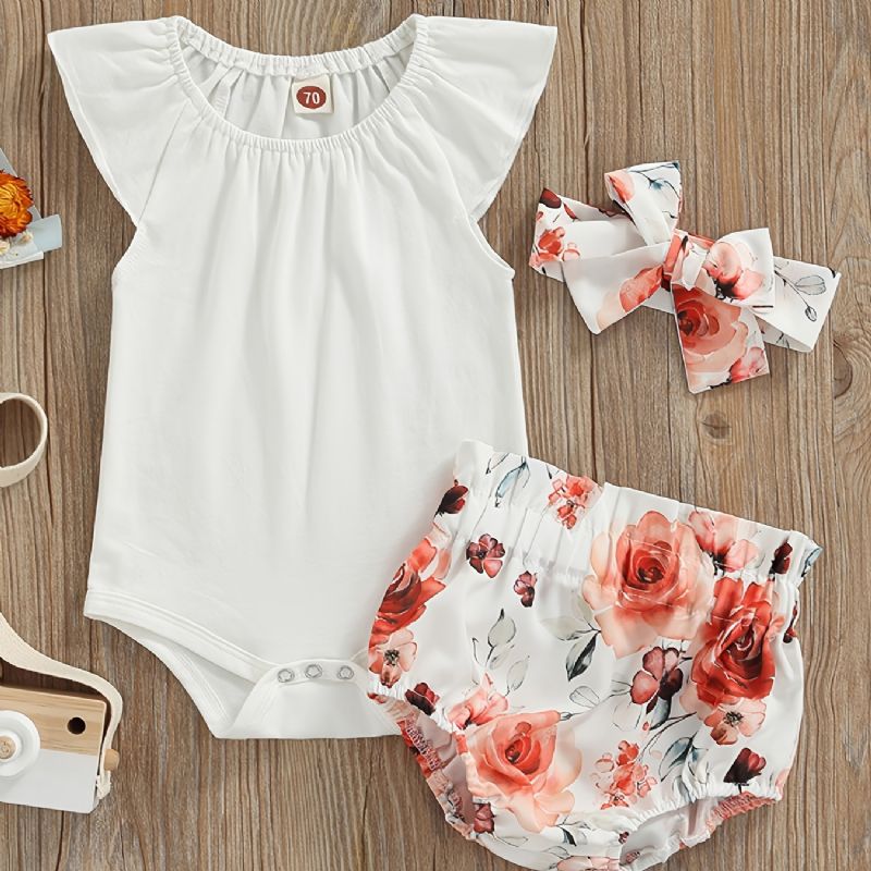 Tyttövauvat Söpöt Yksinkertaiset Kiinteät Hihaton Housut Ja Kukkakuvioiset Kolmiohousut Ja Otsanauhasetti