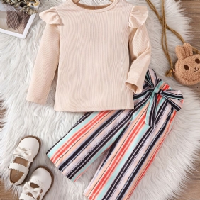 Tyttövauvojen Romper Kirjeprintti Pitkähihaiset Lentävät Bodyt & Sunflower Flare Jalkahousut Ja Pannat Lasten Vaatteet