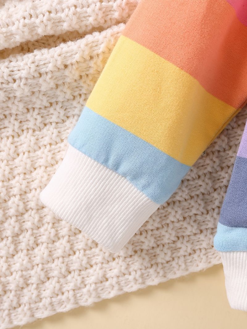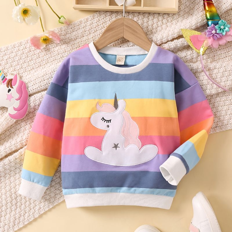 Tyttövauvojen Villapaita Sateenkaari Raidallinen Yksisarvinen Brodeerattu Pyöreä Kaula Pitkähihainen Collegepaita Topit Lasten Vaatteet