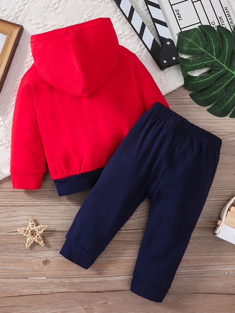 Vauvan Poikien Casual Color Block Hupullinen Paita Jossa Mini Print & Collegehousut
