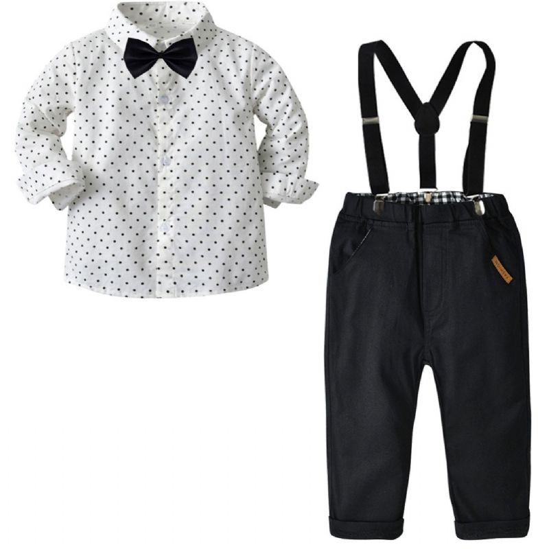 Vauvan Poikien Gentleman Asu Pitkähihainen Pilkkupaita Ja Suppilohousut Joissa On Rusetti Lasten Vaatteet