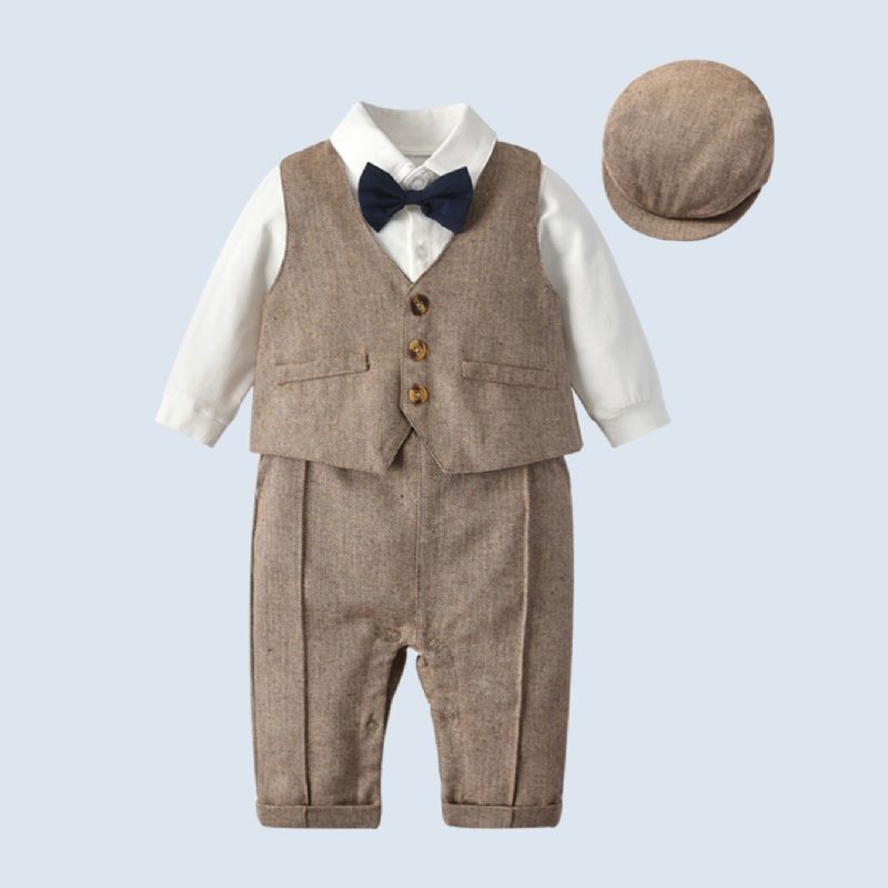 Vauvan Poikien Gentleman Puku 3 Pakkausta (haalarit + Liivi + Hattu)