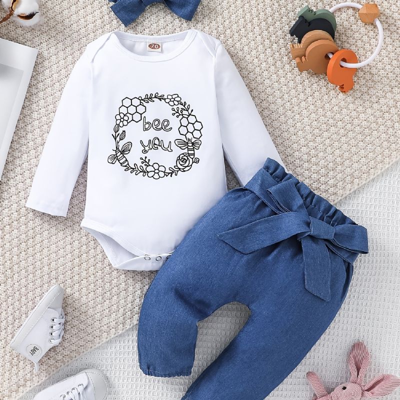 Vauvan Tyttöjen Housut Kirjekuvioinen Pitkähihainen Body Ja Sankasetti 3 Kpl